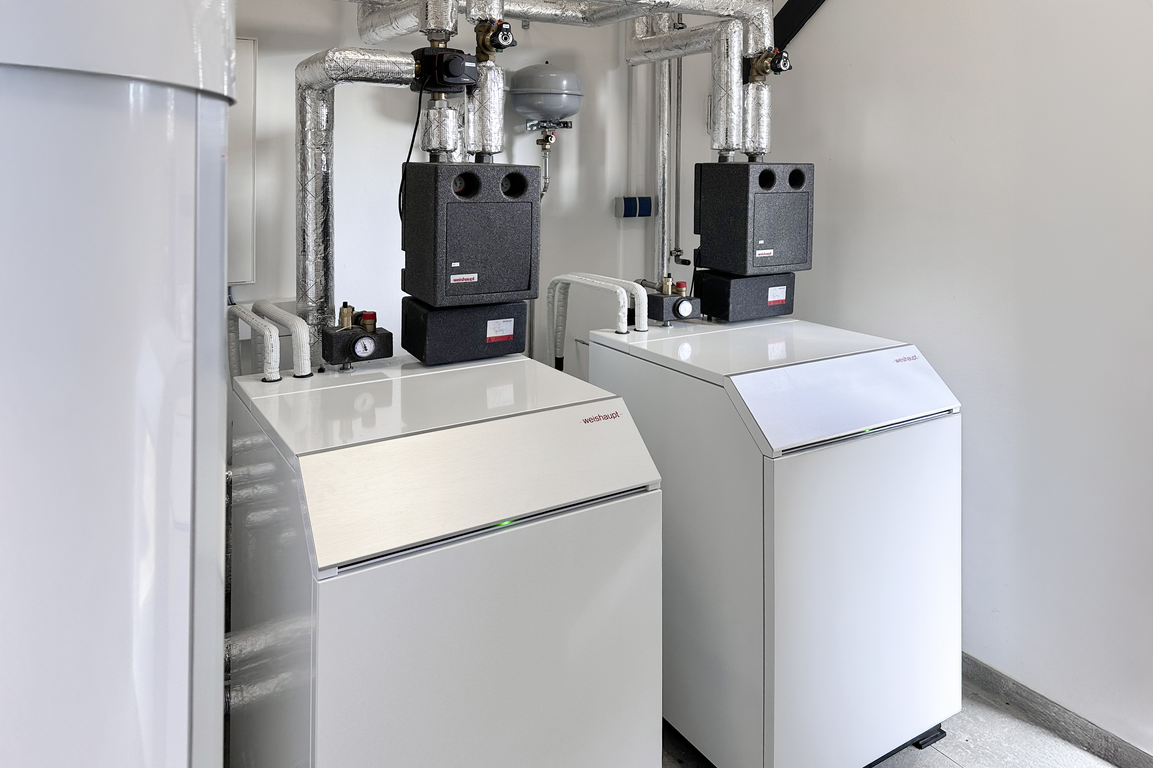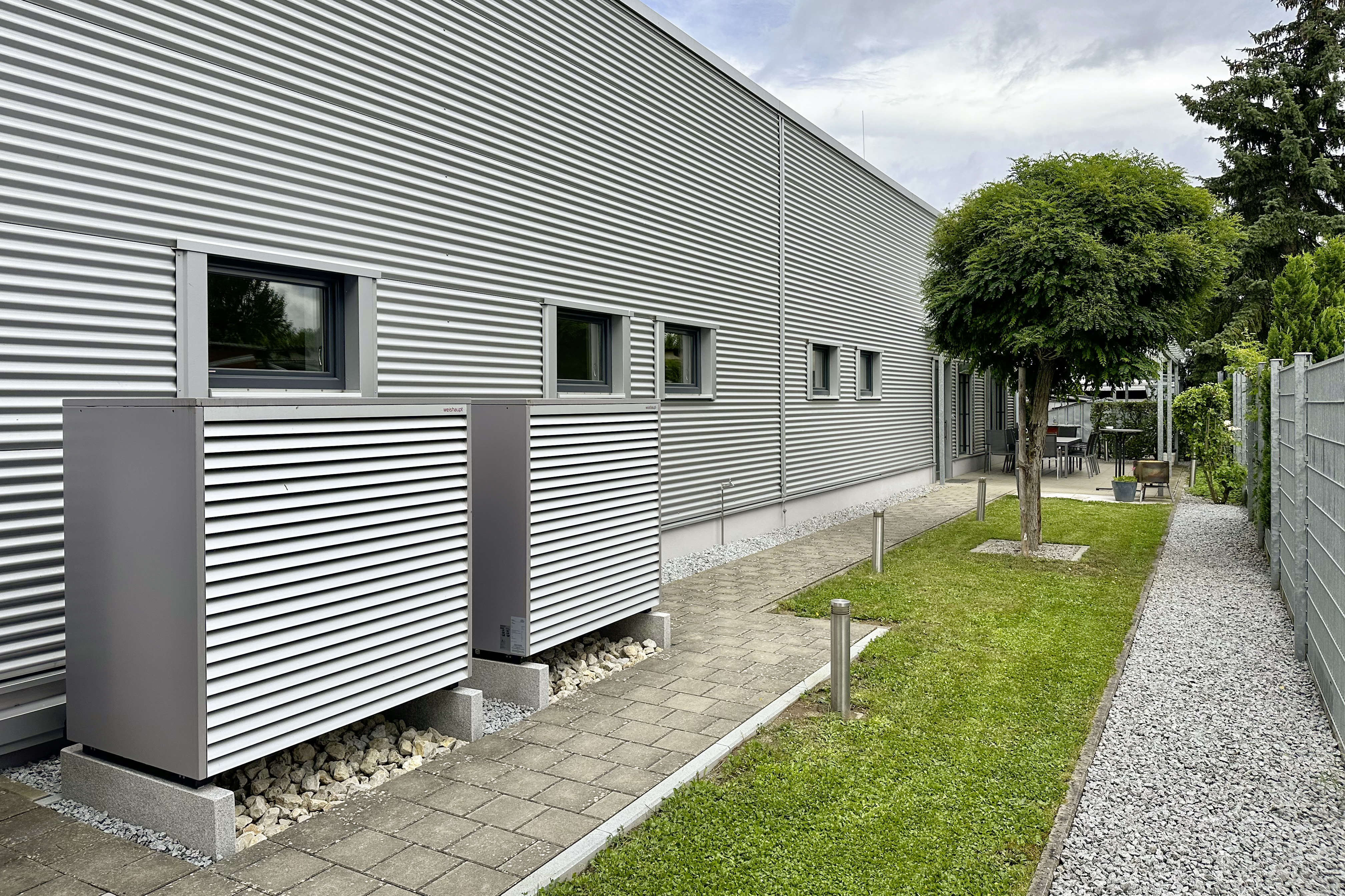 Den forrige bygningen ble oppvarmet av et hybridsystem bestående av en egen kraftvarmeenhet og en kondenserende gasskjele. For å nå målet om et CO 2-nøytralt bygg ble disse systemene byttet ut. Bygningene varmes og kjøles nå med en kaskadeløsning bestående av to Weishaupt Biblock® WBB 20 luft/vann-varmepumper. Klimavennlig strøm produsert med et solcelleanlegg med tilhørende batterikapasitet benyttes også. Det er også satt opp ladestasjoner på stedet, som også er offentlig tilgjengelige.