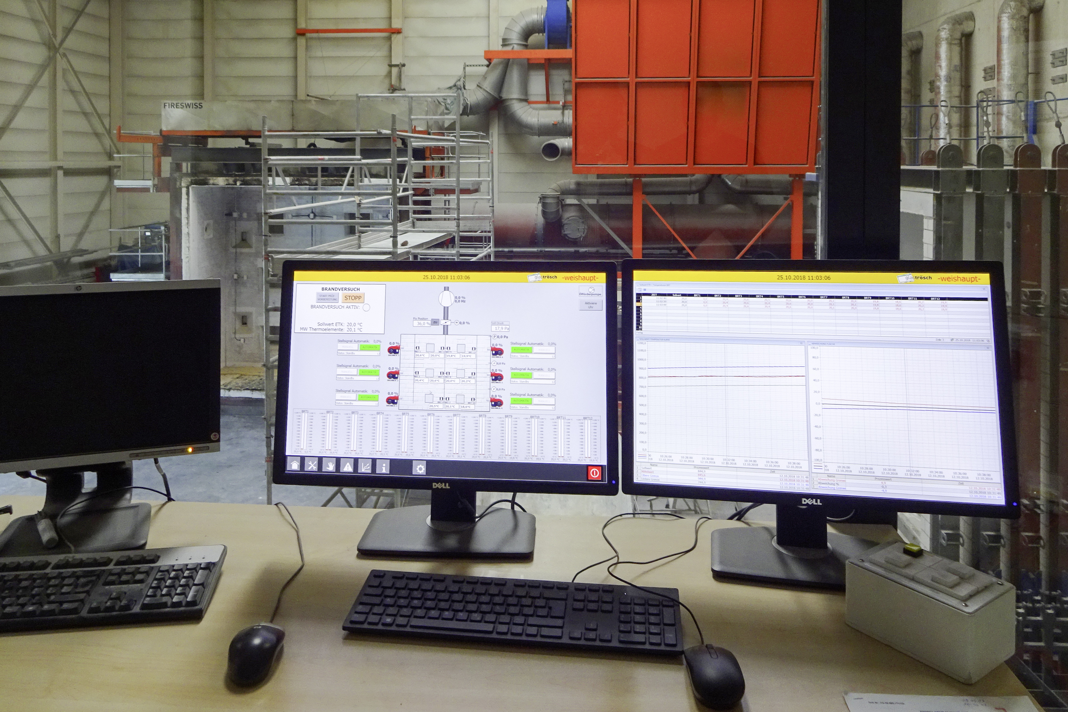 Brannlaboratoriet hos Glas Trösch-Fireswiss i den sveitsiske byen Buochs er godkjent for slike sertifiseringstester. Laboratoriet har en opprettstående testovn på 4 x 4 m, som er åpen foran, hvor glassplatene er plassert i en ramme. Testovnen er utstyrt med seks Weishaupt monarch® oljebrennere av typen WM-L 20, som hver kan modulere fra 150 til 600 kW.