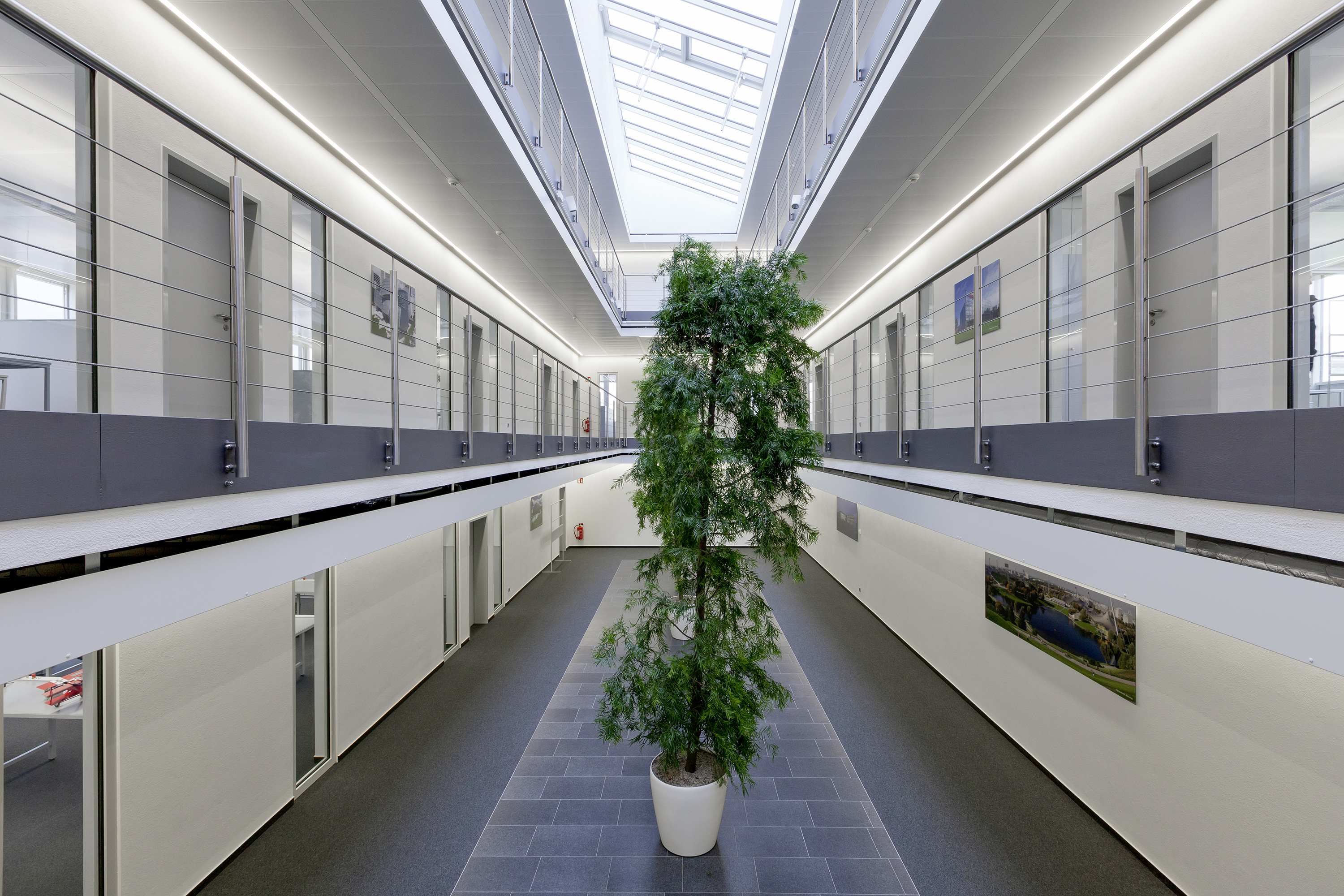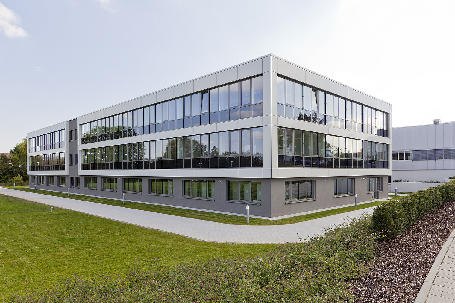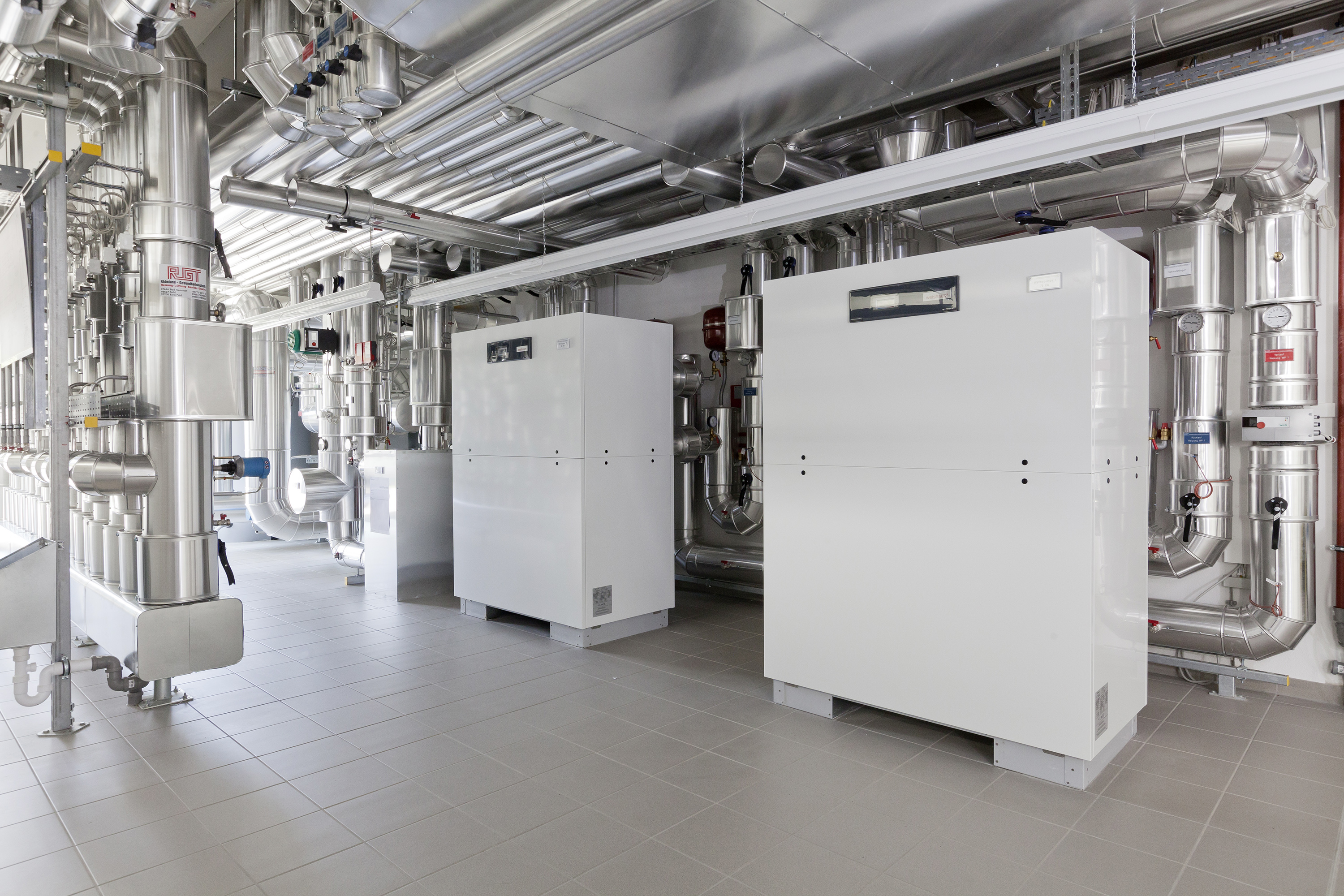 Den nye bygningen har en enkel design, er svært energieffektiv og er utstyrt med toppmoderne teknologi. Bygningen varmes opp og kjøles ned på en miljøvennlig og CO 2-fri måte ved hjelp av 40 geotermiske sonder installert av Weishaupts datterselskap BauGrund Süd. Oppvarmingen styres av to Weishaupt væske/vann-varmepumper WWP S. Bygningen kjøles ned med passiv kjøling ved hjelp av jordsonder. Det trenger neppe nevnes at bygningsautomasjonen i dette bygget er av det mest avanserte slaget, ettersom Neuberger utvikler bygningsautomasjon selv.