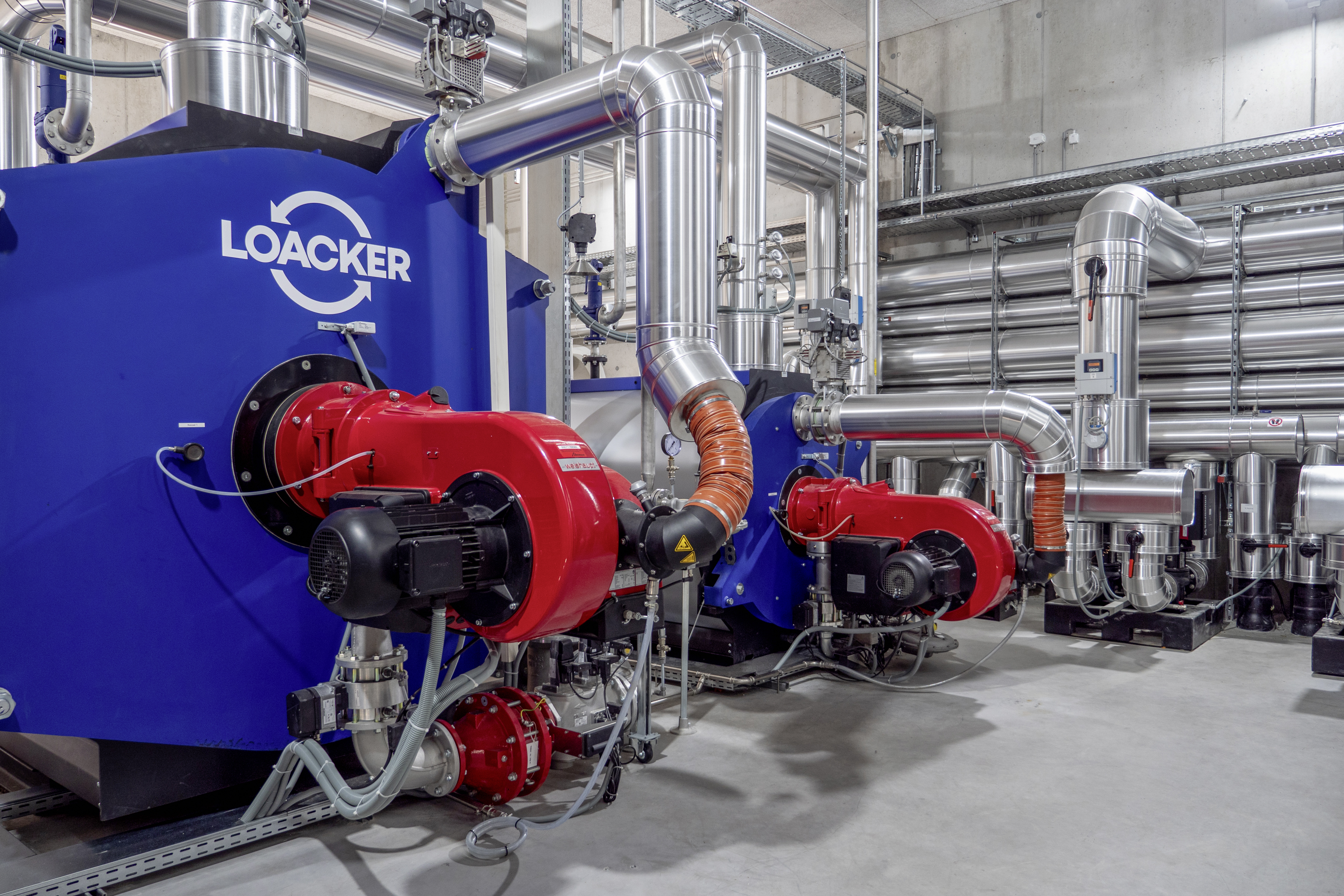 Dette gjelder også for den nye varmecentralen på Loackers adresse i Lustenau i Østerrike. Anlegget leverer blant annet prosessvarme til biogassanlegget og varme til kontorbygningen. Varmen produseres av to Weishaupt monarch® WM-G30 togassbrennere utstyrt med ekstern røykgassresirkulering. Varmen lagres i energiakkumulatorer og sendes videre i målte doser. Egenprodusert biogass og naturgass brukes som brensel.