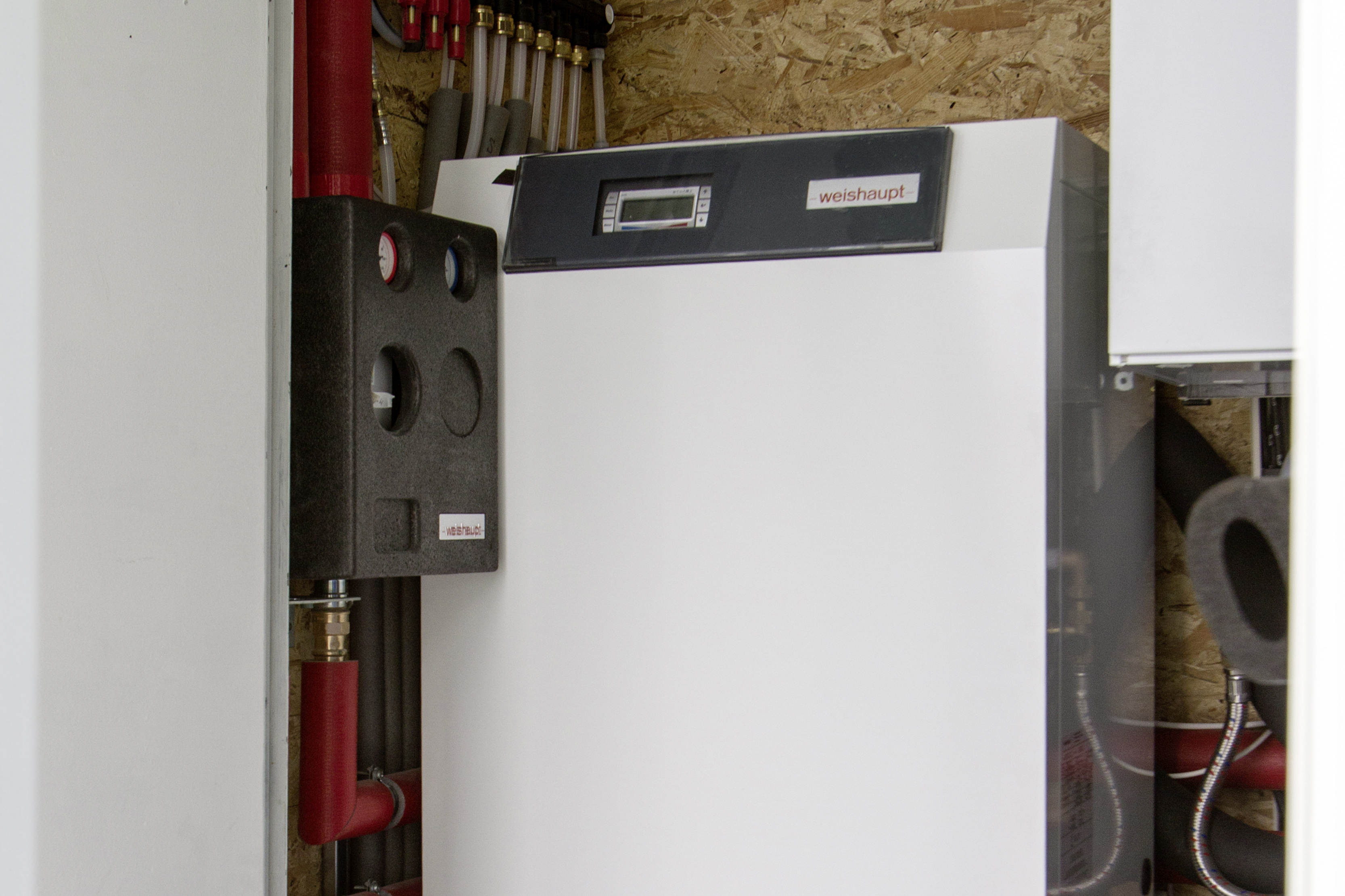 Det var et mål at det tekniske utstyret i husene skulle oppfylle de høyeste krav og være klimavennlig. Husene er konstruert for helårsbruk og er utstyrt med Weishaupt væske/vann-varmepumper, som utvinner varme fra vannet via rør med væske. Disse svært effektive varmepumpene av typen WWP S11 ID for innendørs installasjon er koblet til en Weishaupt WAS 300 varmtvannsbereder i hvert hus – den perfekte løsningen for klimavennlig oppvarming og energibesparende varmelagring.